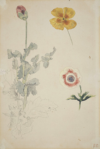 Étude de fleurs : Pavot, pensée et anémone, vers 1845-1850