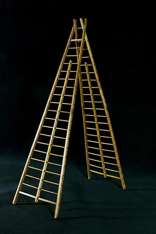 Bois de cormier, cuivre. H. 53 ; L. 7 à 10 cm